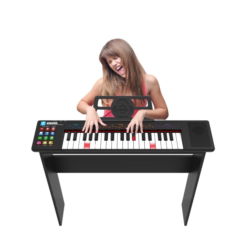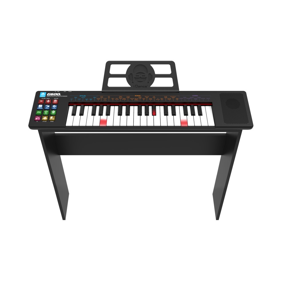 ¡Descubre el mundo de la música con el iDance Teclado Piano Luminoso G-600L! Diseñado especialmente para niños y principiantes, este teclado educativo cuenta con 37 teclas con luces LED que guían al pequeño músico en su aprendizaje. Incluye 22 canciones en modo aprendizaje, para que tocar el piano sea intuitivo, divertido y motivador desde el primer día.Gracias a su modo academia, los niños pueden explorar las obras de grandes compositores como Bach, Mozart o Beethoven, así como experimentar con estilos modernos como Disco, Hip Hop, Rock o Latino.