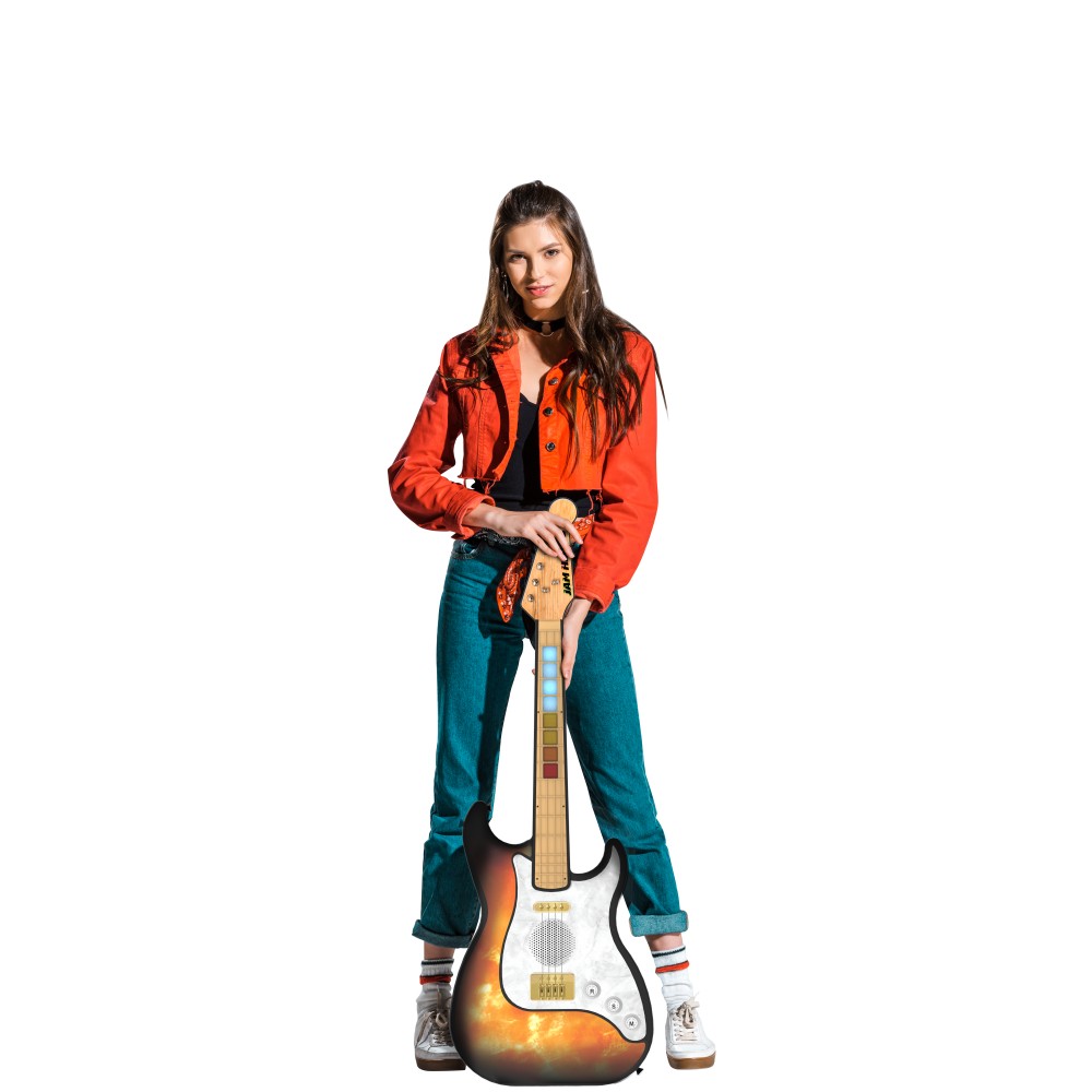 Con la Guitarra Eléctrica JAM HERO 3 de tamaño real, vivirás la experiencia de tocar una guitarra auténtica con un toque moderno e interactivo. Esta guitarra electrónica está equipada con sensores táctiles y 8 pads LED en el mástil, permitiendo aprender y tocar de forma intuitiva y divertida.Gracias a sus más de 300 sonidos integrados, podrás tocar acordes mágicos, solos espectaculares, acompañamientos, acapellas y hasta 50 ritmos musicales diferentes. Además, incluye 10 estilos de guitarra que van desde el rock, pop o reggae hasta blues y balada.